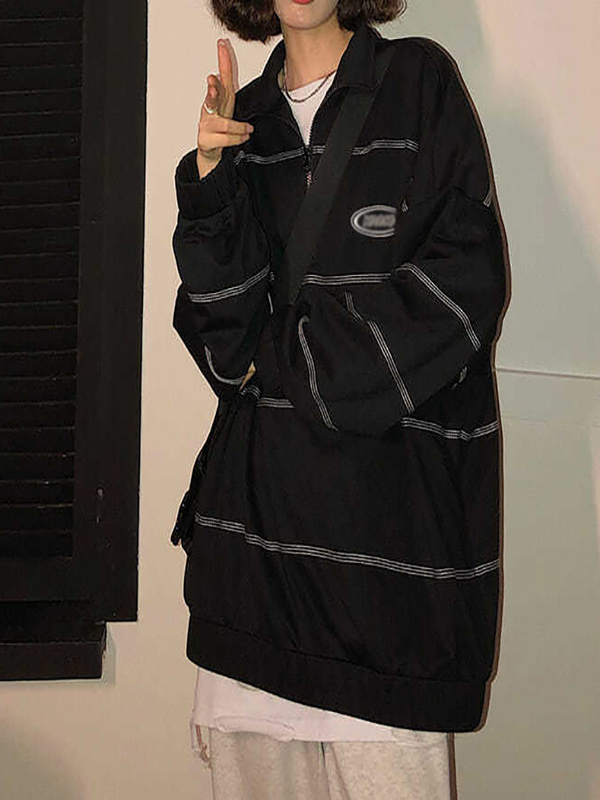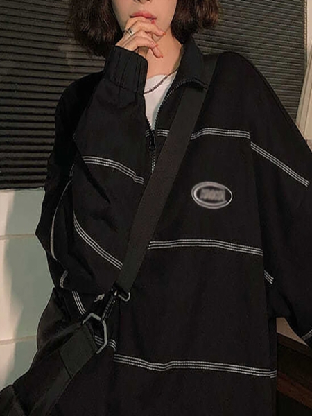 Широкий POLO воротник придает удобство и стиль, а принт и линейный дизайн делают эту модель уникальной.