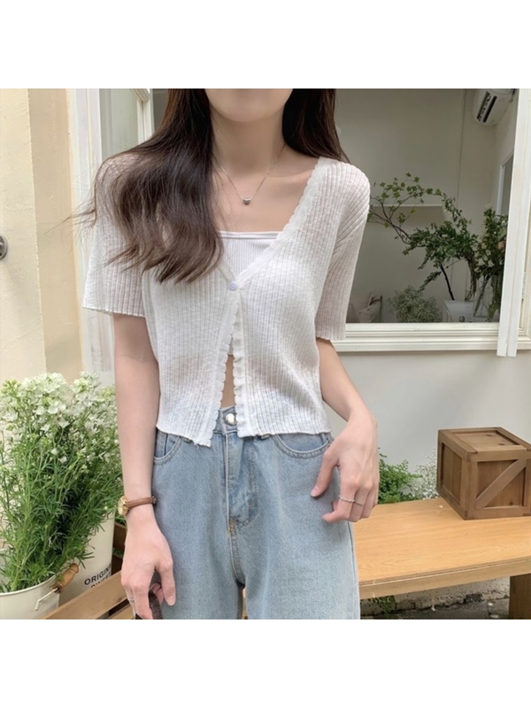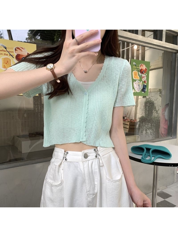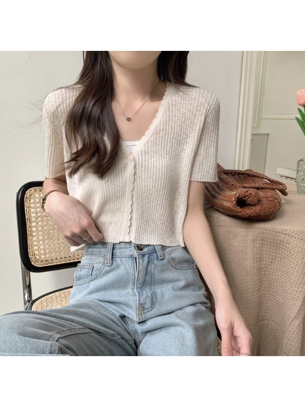 2024 Летний Новый Женский Кардиган с Воротником Болеро Из Льдины и Шелковистый Трикотажный Пуловер